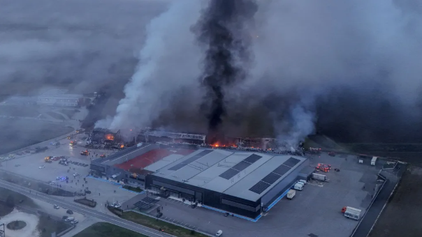 A helyszínen készült drónfelvételeken sűrű füst látható a gyár fölött. A BBC szerint a tűz kitörése előtt egy erős robbanás hallatszott, a tűz okának feltárása azonban még folyamatban van.