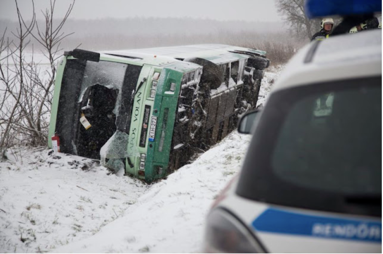 Kedden Vácdukán árokba csúszott és oldalára borult egy menetrend szerinti autóbusz. A tűzoltók nyolc embert mentettek ki a járműből, közülük kettőt hordágyon, a sérültek ellátásához mentők is érkeztek. Többen megsérültek, amikor árokba csúszott és oldalára dőlt egy menetrend szerinti busz Vácdukán, a Kossuth Lajos úton, a rendezvényközpont közelében kedden, írja az MTI. Csámpai Attila, a Pest Vármegyei Katasztrófavédelmi Igazgatóság szóvivője elmondta: